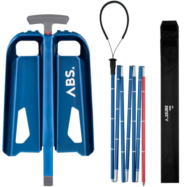 Comme son nom l'indique, le A.SSURE SET, SHOVEL, PROBE de chez ABS est un ensemble de sécurité compact qui réunit pelle et sonde.