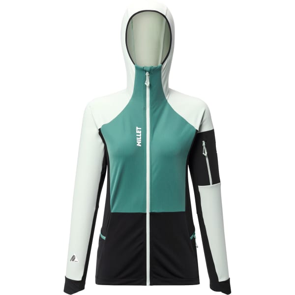 Clairement conçue pour le ski-touring performance et l’entraînement des skieurs pros, la PIERRA MENT HOODIE de chez Millet est une veste d'action pour femme à la construction hybride.