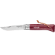 Matière de la lame en Acier inoxydable Sandvik : l'acier inoxydable 12C27 modifié de Sandvik mis au point pour Opinel est réputé pour son tranchant et sa facilité d'entretien. L'acier inoxydable capable de subir le traitement thermique qui lui donne sa bonne dureté est appelé martensitique. Il a une teneur en carbone au moins égale à 0,40% ce qui permet d'obtenir un tranchant très satisfaisant sans être sensible à la corrosion