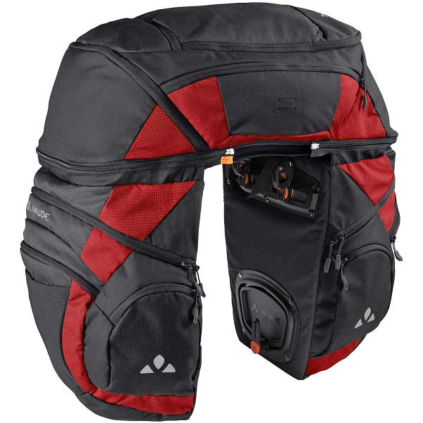 Présentant un volume de rangement spacieux de 65 litres, la KARAKORUM PRO de Vaude est une sacoche triple adaptée aux voyages à vélo.